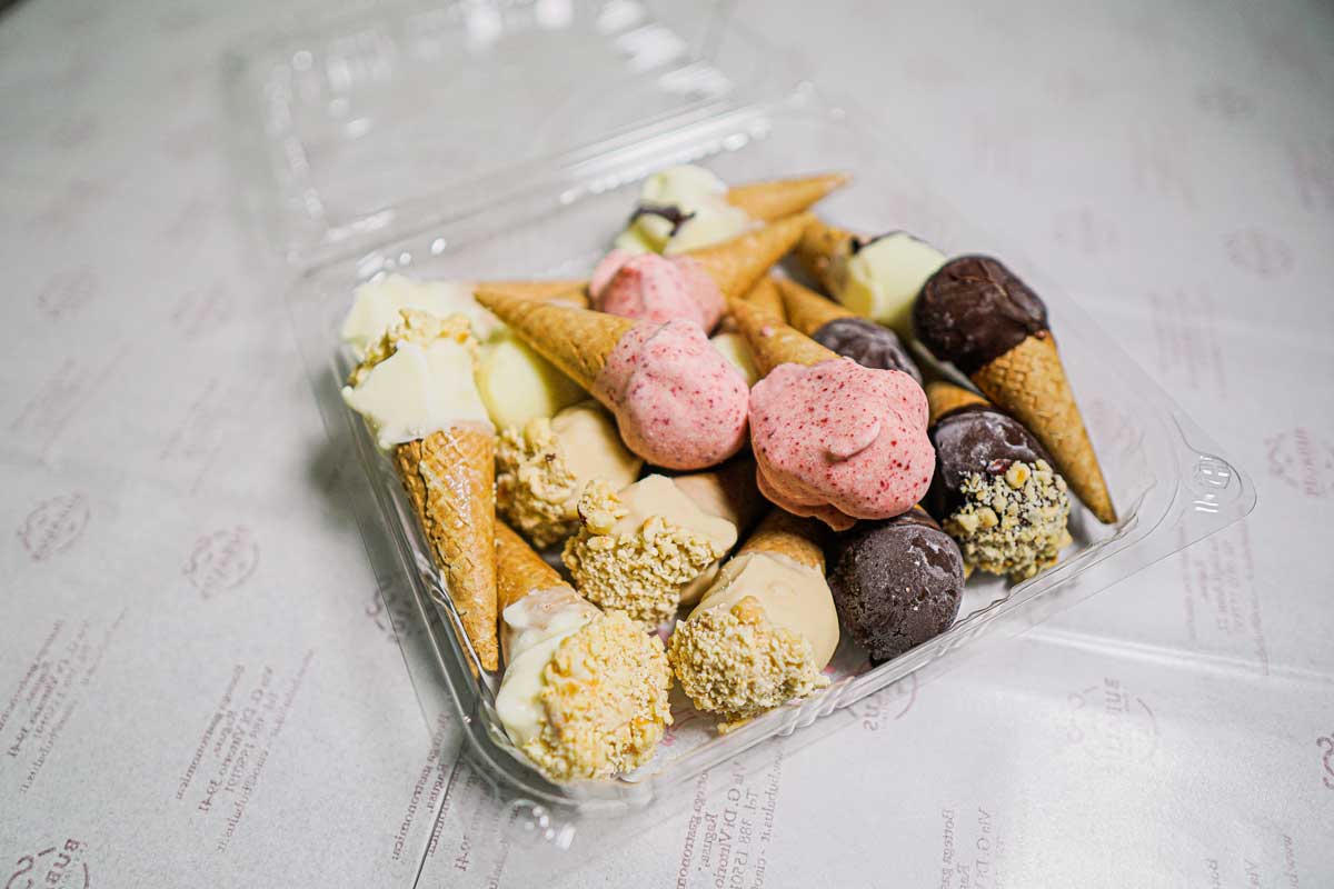 • Quanto costa: il gelato a vaschetta costa 16€ al chilo, quindi una vaschetta sugli 8 euro (viene pesata sul momento), i mignon costano 18€ al chilo a seconda del peso che viene acquistato;
